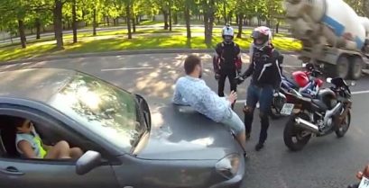 لٹویا میں, ایک ڈرائیور موٹرسائیکل سواروں کے ایک گروپ کے ساتھ مارپیٹ کرتا ہے۔, لیکن ایک غیر متوقع واقعہ جھگڑے کو روک دے گا۔.