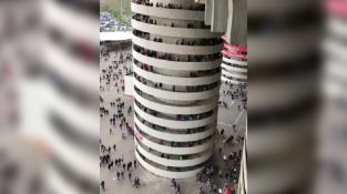 ایک اسٹیج کی سرپل سیڑھی مڑنے کا تاثر دیتی ہے۔