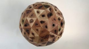 بڑھئی کیتھ ولیمز گلاب کی لکڑی کے ٹکڑوں کا استعمال کرتے ہوئے ایک جیوڈیسک دائرہ بناتا ہے۔.