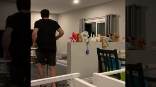 ایک خرگوش کچھ دوسرے بھرے جانوروں کے درمیان چھپا ہوا ہے۔, اونٹاریو، کینیڈا کے ایک گھر میں. کیموفلاج بے عیب ہے۔.