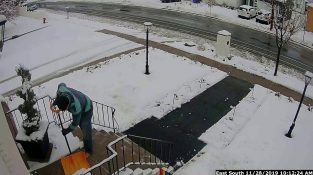 ایک آدمی اپنے گھر کے دروازے کے سامنے تقریباً 10 منٹ تک برف صاف کر رہا ہے۔, لیکن برف کا ہل تیز ہو جائے گا اور راستے کو دوبارہ برف سے ڈھانپ دے گا۔.