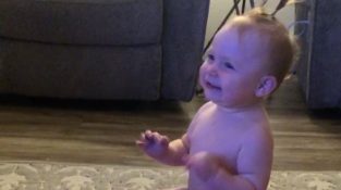 لیلا کا مضحکہ خیز ردعمل, 14 ماہ کی ایک چھوٹی بچی کی, جب وہ بغیر خواہش کے بوتل پلٹتا ہے۔.