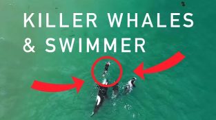 اورکاس تیراک جوڈی جانسن کے ساتھ کھیل رہا ہے۔, ہاہی بیچ پر, نیوزی لینڈ