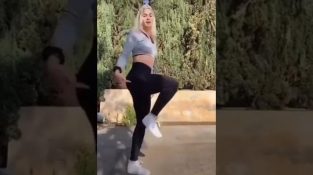 ایک عورت شفل ڈانس ٹیوٹوریل ویڈیو میں چالوں کو کاپی کرنے کی کوشش کر رہی ہے۔.
