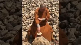 ایک شاولن راہب کنگ فو کا مظاہرہ کر رہا ہے۔, اپنی انگلیوں سے پتھر توڑنا.