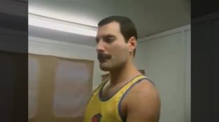 کوئین کنسرٹ سے چند منٹ پہلے, فریڈی مرکری آواز کی مشق کر رہا ہے۔.