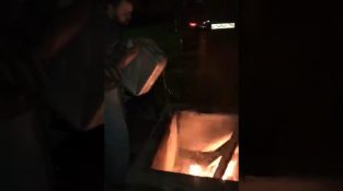 ایک آدمی بریزیئر کو روشن کرنے کی کوشش میں پٹرول کا کین استعمال کر رہا ہے۔. اس کے بعد وہ کنٹینر کو پلاسٹک کے تالاب میں گرا کر بجھانے کا فیصلہ کرتا ہے۔, لیکن یہ جل جائے گا, پول کو بھی آگ لگانا.