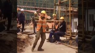 تعمیراتی کارکن اپنے ساتھیوں کے لیے رقص کا معمول بنا رہا ہے۔