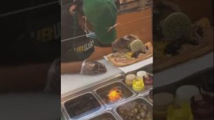 ریسٹورنٹ کا ملازم سینڈوچ بناتے ہوئے سو جاتا ہے۔