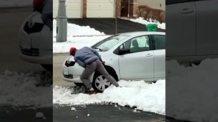ایک چور برف میں اپنی گاڑی کے ساتھ پھنس گیا۔