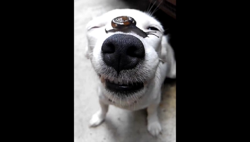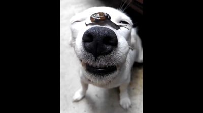 一隻蝸牛走進一隻狗的鼻子, 誰被震驚的奇怪的物體上存在.
