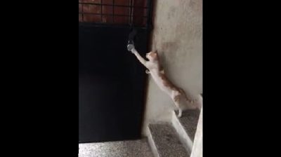 一隻溫柔的貓敲了敲門進入她的老闆的家.