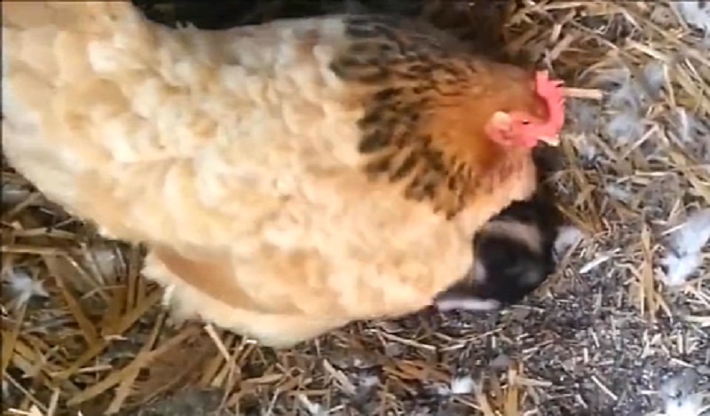 在動物保護中心SPA母雞, 在蒙彼利埃,鎵, 照顧一個孤立的小貓到達現場. 雞試圖熱身小貓的屍體, 它看起來很惱火,當有人刪除小動物.