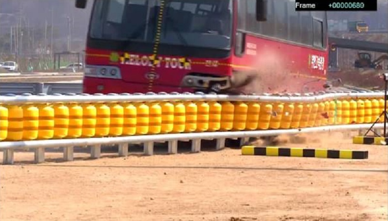 公司ETI公司的發明, 滾子系統名稱這一新的安全欄,通過改變車輛的運動軌跡衰減的衝擊力, 恢復的道路上的背面. 他已經通過了所有測試,由公路安全局在韓國獲得批准.