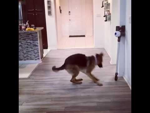 可怕的狐狸是太快了,可憐的德國牧羊犬