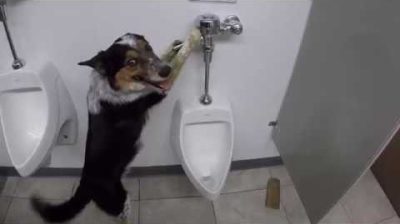 在印度的公共廁所, 男人可以在上面小便池屏幕觀看搞笑視頻. 即將推出漫畫...