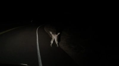 當他們在夜間亞利桑那州圖森附近的公路上移動的, 一位司機遇到了兩個野兔決一雌雄在路邊. 這兩個野兔誰站在他們的後腿, 他們給快速打擊對方前腿.