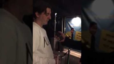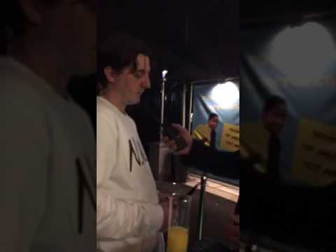 蹦床在迪斯科讓一個喝醉酒的客人在他的廣播 (對講機) 打擊