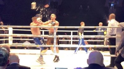 2017 年 1 月 28 日星期六,拳擊決賽“Eye Of The Tiger” (eottaS), 在貝爾中心 (蒙特利爾, 加拿大), 拳擊手布蘭登 - 庫克接受了桶頭部冰.