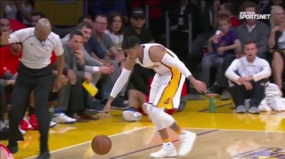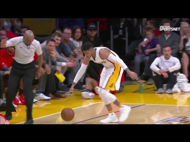 該安吉洛·羅素湖人隊做了一個很滑稽的失誤試圖接球.