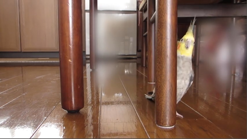 Ο Shiro ο παπαγάλος κοιτά τον εαυτό του στον καθρέφτη ενώ ο ιδιοκτήτης του σφυρίζει το παιδικό τραγούδι "Χαρωπά τα..