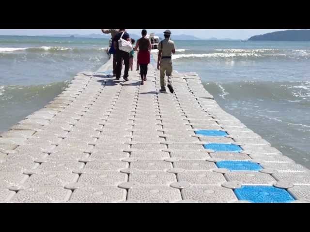在泰國的卡隆海灘, 薄的浮橋,用於運載乘客的船舶.