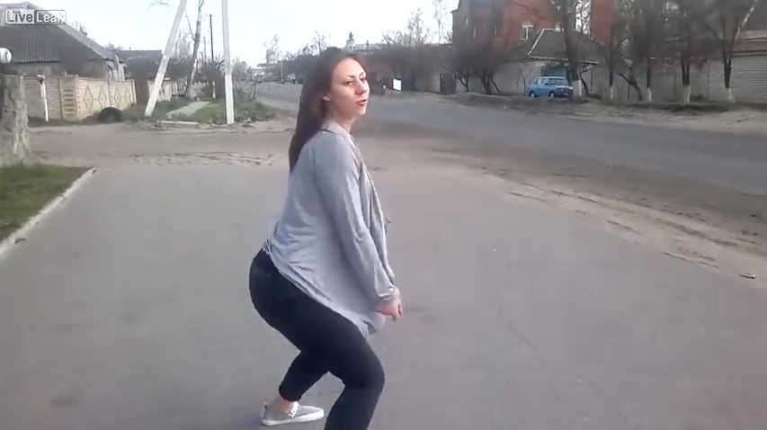在哈爾科夫烏克蘭, 一個女孩逗樂了在相機面前跳舞, 當在路上接下來是一名電單車和一輛車. 這輛車,試圖向左轉而無須給予必要的關注, 同時電單車司機接近太快. 電單車與汽車碰撞嚴重,掉到了地上. 驅動程式可能爪和大量的尋求注意力的年輕女子. 電單車司機被送往醫院與骨盆和腿部骨折.