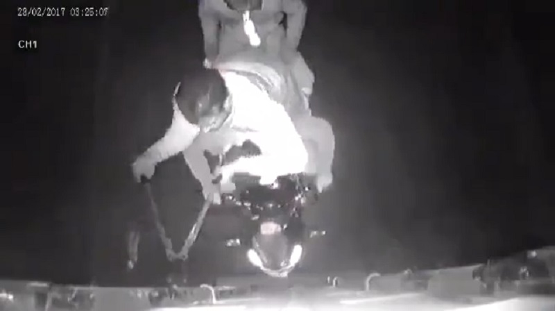 摩托車上的三名男子試圖打開卡車的車門,竊取商品. 該業務似乎受到著名電影“速度與激情”的啟發, 失敗草草收場.