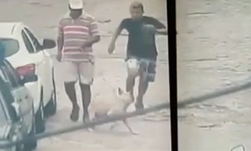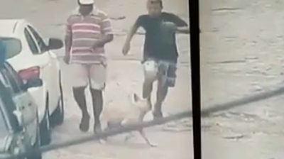 一個人就與他的狗走在阿拉戈斯在巴西街頭, 接近小偷試圖從警察手中逃脫時. 狗決定幫助追趕小偷, 因為她咬了他的…敏感部位. Aoyts!