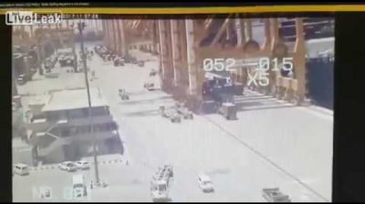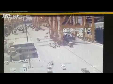 該CMA CGM半人馬座集裝箱船觸礁船到岸吊同時在阿聯酋傑貝阿里港靠泊, 造成巨大的崩潰. 沒有受傷…. 船從右上角方法, 接觸和塌陷為 0:55 分.