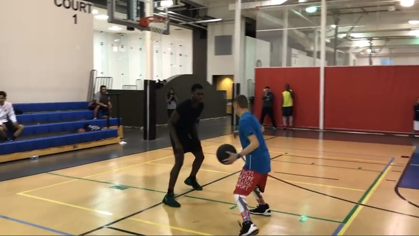 街頭籃球的嚮導, 格雷森·鮑徹 (1,77 米. 高度), 也被稱為“教授”, 在針對運動員dimetrou一個籃球比賽.