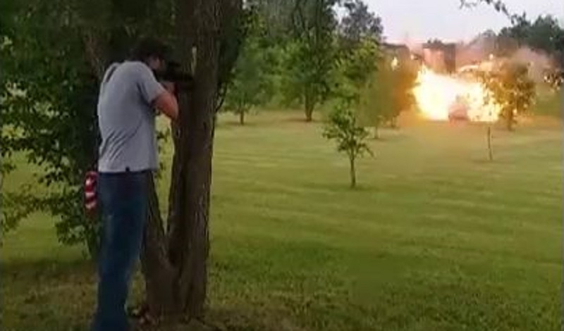 隱藏在樹後面, 一個人將有一個令人不快的意外後拍攝裝滿炸藥的冰箱, 距離酒店只有幾十米的場. 在爆炸的瞬間, 冰箱門以高速向上噴出.