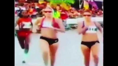 談到令人失望. 查閱這名賽跑選手來自俄勒岡州慶祝他的勝利有點太早.