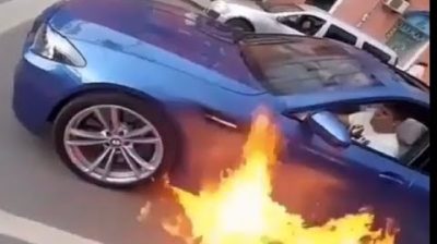 這寶馬抓住火. 總失敗! 我不能相信司機駕車離開, 並沒有停下來,試圖把它拿出來. 你會怎麼做了?