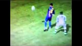 在對阿根廷的慈善友誼賽, 球員保羅·戴巴拿贏得任意球, 然後玩家, 對手的替補和教練進入法庭,以保護他們的目標.