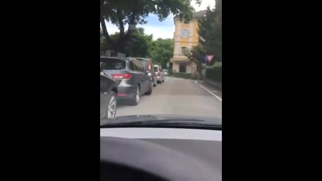 在瑞士伯爾尼, 駕駛員以奇怪的動作進入停車場.