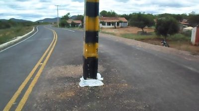 在村里Icozinho巴西, 一根電線桿被放置在路中間.