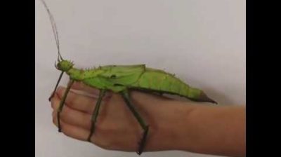 「這是兩種不同類型的噬菌體: 叢林若蟲和麥克雷的幽靈, 也被稱為Heteropteryx Dilatata和Extatosoma Tiaratum. Heteropteryx Dilatata 保持著世界上最重的竹節蟲和最大的噬粒卵的記錄。”
