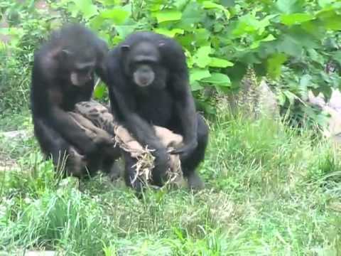 兩只黑猩猩與完美同步前進
