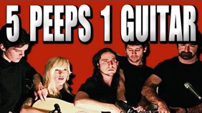 用塑料筆的幫助, 女人模仿大提琴的聲音與原聲吉他.