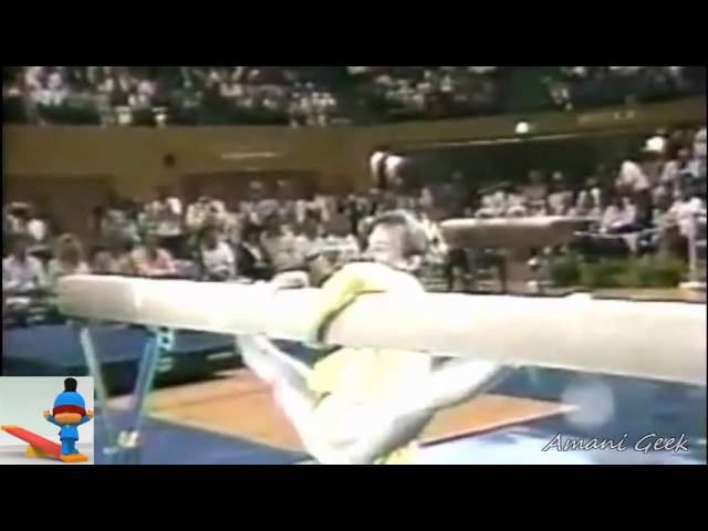 喜劇演員和體操運動員保羅 · 亨特作為琳娜搞笑露面, 執行各種特技. 報價是從各種健身錦標賽在美國, 20世紀80年代.