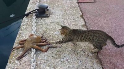 Μία σμέρνα επιτίθεται σε ένα χταπόδι που δίνει..