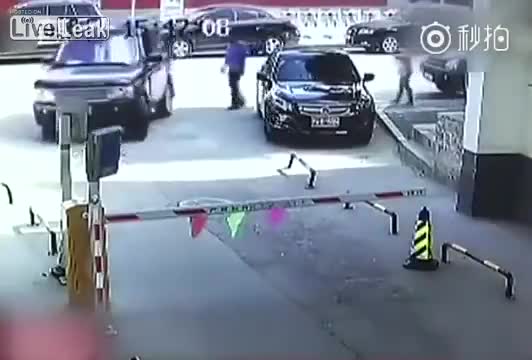 這段視頻顯示白色粉碎對捷豹路虎攬勝停泊路邊的六倍, 每次...