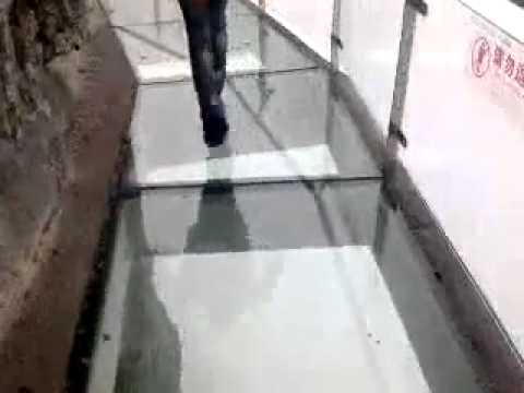 一串玻璃的令人恐懼的景色, 在中國的天門山兩邊.