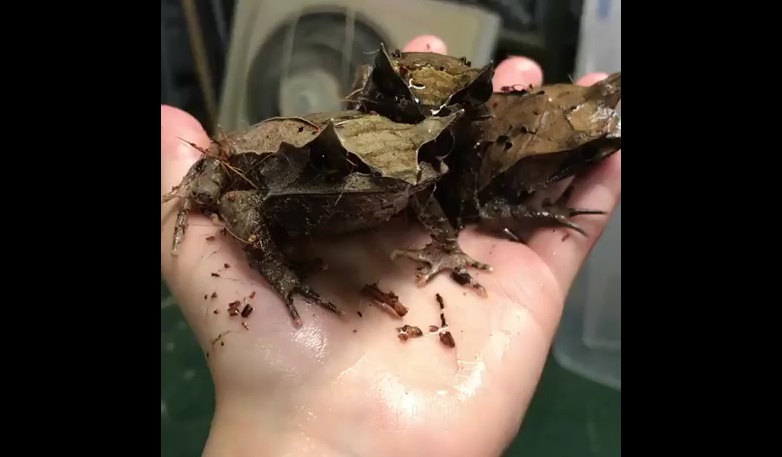 角蟾青蛙在馬來西亞nasuta流行, 他們對自己的身體一個非常特殊的偽裝, 因為他們像樹葉.