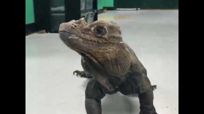 “我就是喜歡推土機, 我的男犀牛鬣蜥. 他真是一隻有趣的城市恐龍。”