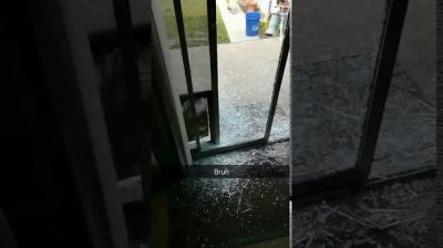 過於興奮的狗沒有看到前面的玻璃門走了進去,她跑到花園. 店主解釋說,狗沒有受傷.
