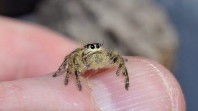 蜘蛛Hyllus的Diardi, 一種跳蛛的, 得到一個驚人的speed'm飛行到人的手.