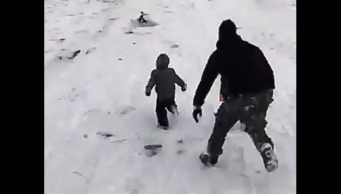 爸爸以驚人的速度作出了反應, 試圖保護幼兒因意外在雪地.
