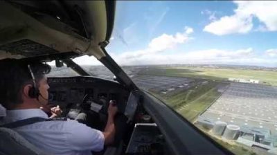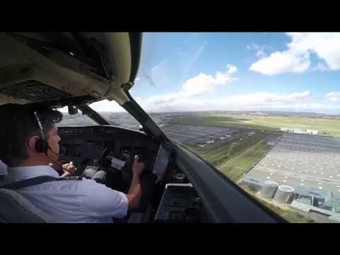 飛機著陸的美麗鏡頭, 從視覺駕駛艙和飛行員的座位.